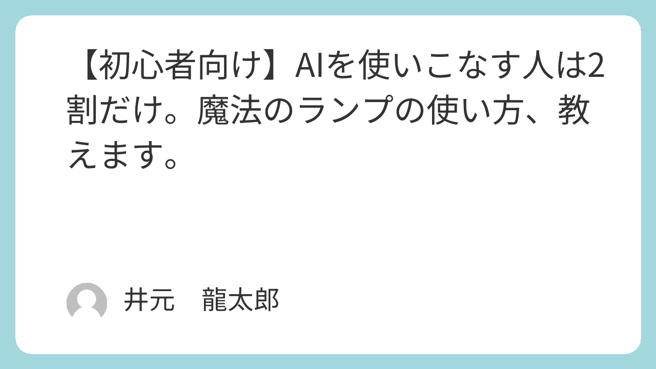 今、AIをうまく使える人は全体の2割以下だと思っています。