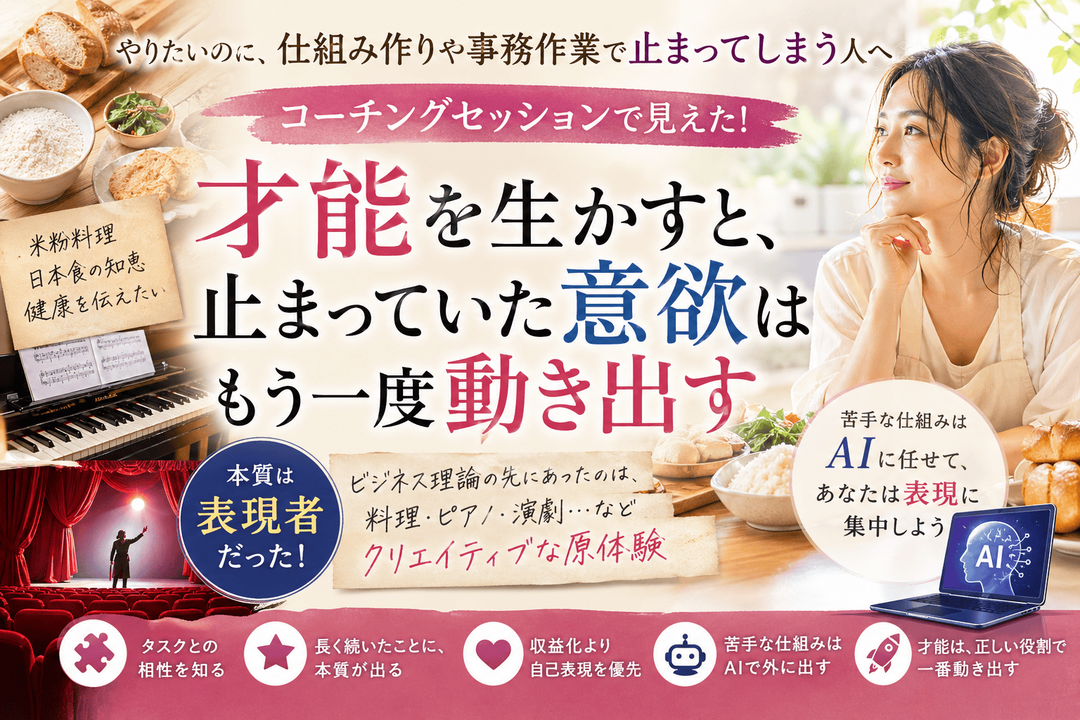 「左脳的な仕組み作りは、AIに任せましょう。あなたは表現することだけにエネルギーを使っていいんです」